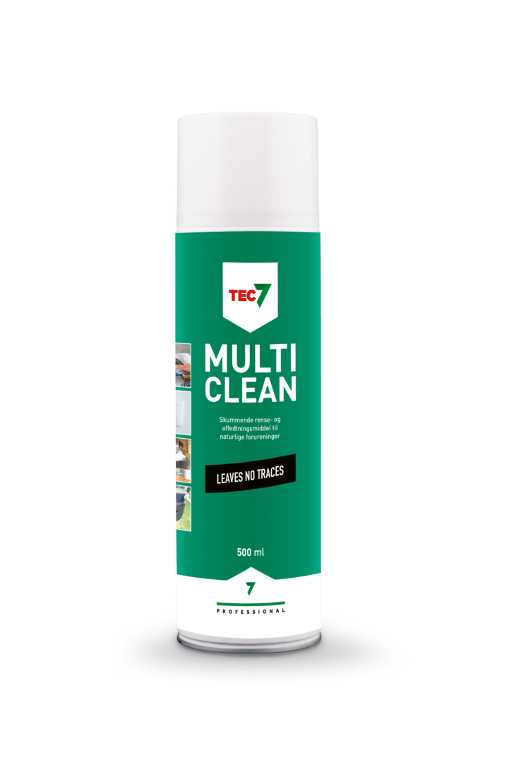 TEC7 Multiclean - Et effektivt rengøringsmiddel til fjernelse af naturlige forureninger såsom: blyantstreger, kaffepletter, nikotin, madrester, sodavand og insekter. TEC7 MultiClean kan bruges på glas, spejle, skærme og plast.
